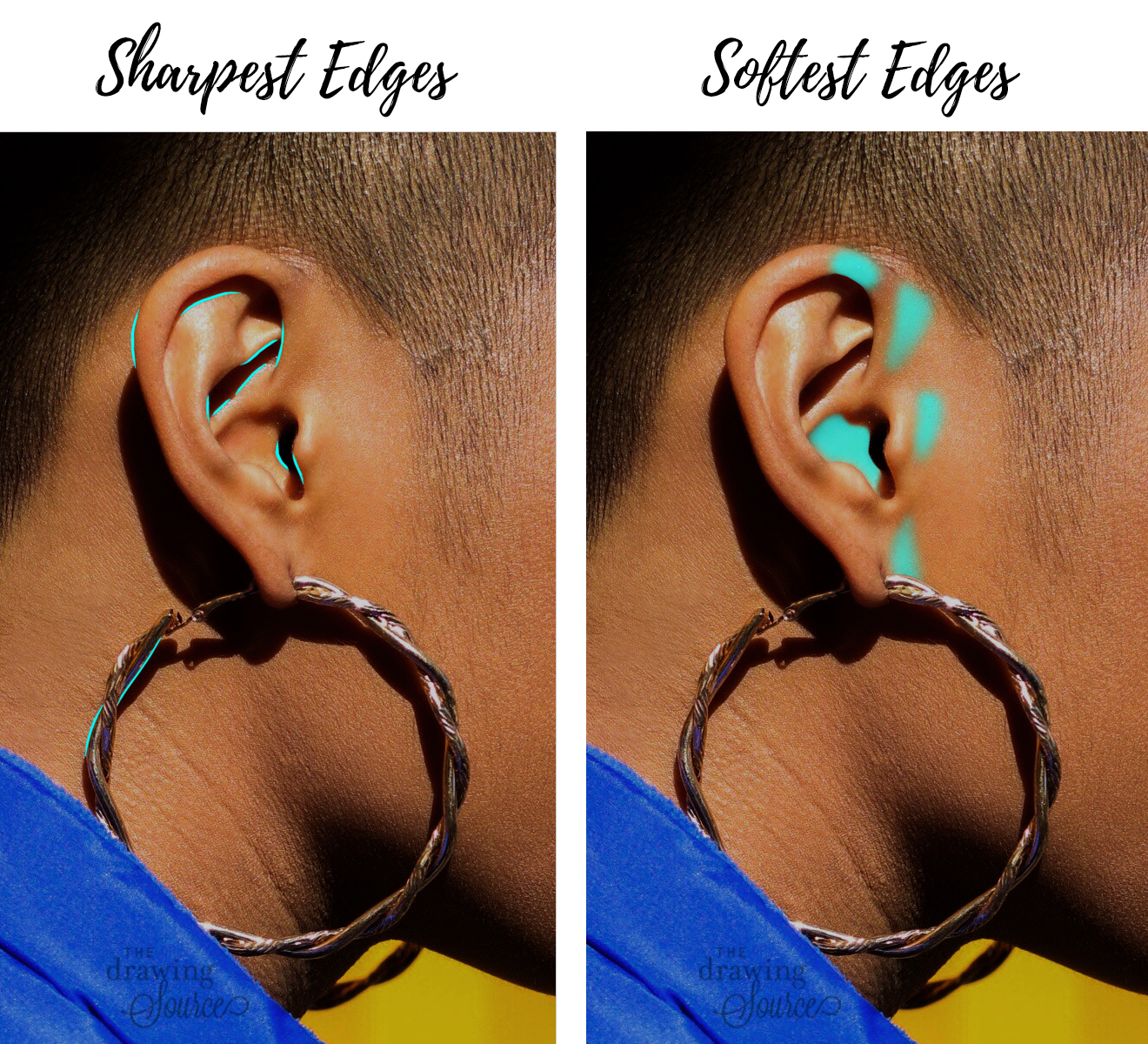 To create convincing depth and dimension in my ear drawing, I need to mimic the edges that I see on my subject as sensitively as possible.