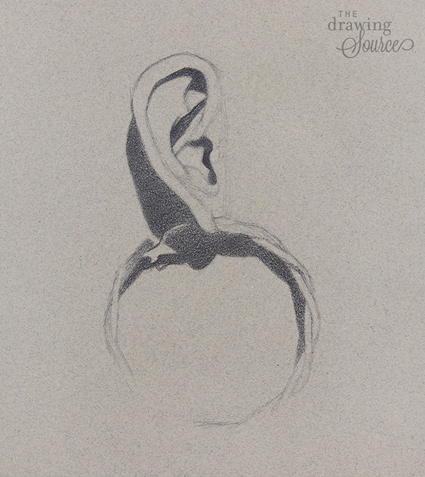 This is just such a scenario: because there are such distinct, small shadow shapes in this subject, I can use them to help me judge the proportions of the ear and create a more accurate line drawing.
