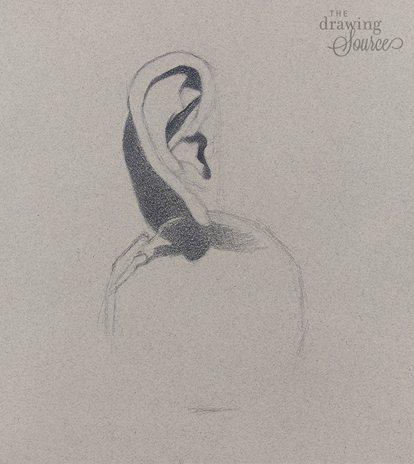 If you look closely at the shadow shapes in the ear, you'll notice several subtle value differences: