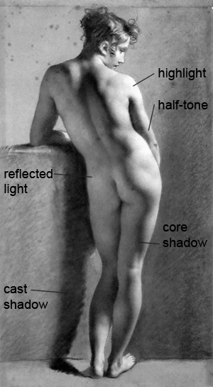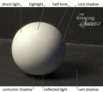 The good news is that when light falls on form, it acts in predictable ways. We can learn to "predict" the behavior of light by studying how light fall on basic forms, such as a sphere.