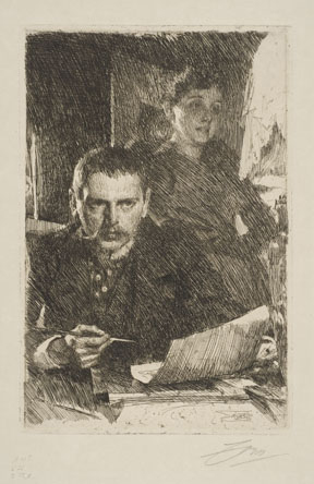 Anders Zorn. Self portrait with wife Emma. 1891. Kathe Kollwitz. 1892.