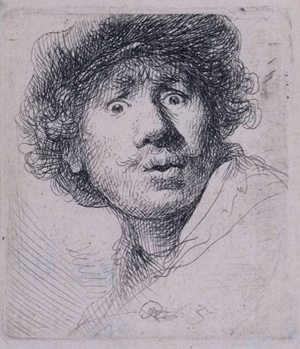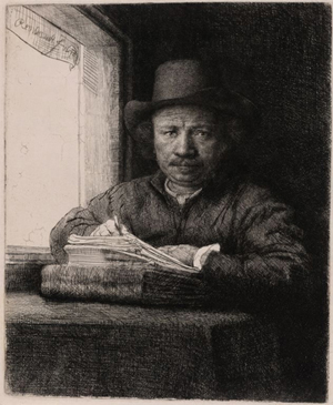 Rembrandt van Rijn. 1648. Self portrait drawing at a window. Elisabetta Sirani. 1660.
