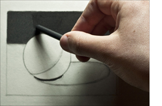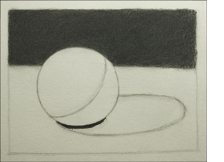 Give yourself at least a few minutes to put down your pencil and simply observe the subject. Begin by looking at the sphere with your eyes open, as you have done up to this point. Then, half-close your eyes (squint), and observe how the values change. Use questions such as the ones below to guide your observation.